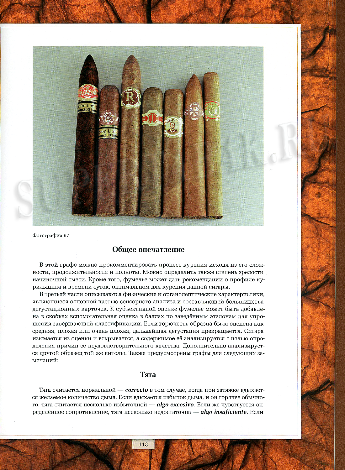 Любители смогут почерпнуть из книги множество сведений о сигарах в виде многочисленных советов и замечаний на предмет их хранения и выдержки, а также статей, непосредственно связанных с искусством курения и посвященных дегустации и сенсорным проверкам. Полученные знания позволят курильщику максимально насладиться сигарой.