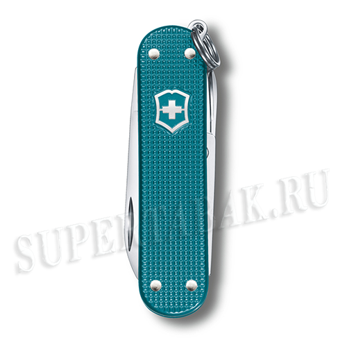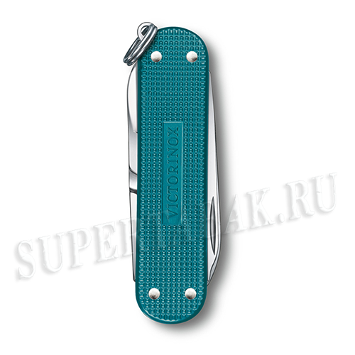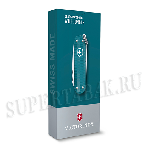 Нож-брелок VICTORINOX Classic SD Alox Colors "Wild Jungle", 58 мм, 5 функций, лезвие и инструменты из нержавеющей стали, алюминиевая рукоять тёмно-бирюзового цвета