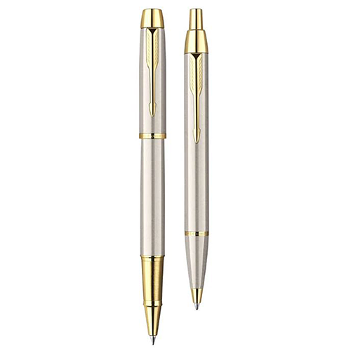 Подарочный набор Parker IM содержит роллерную и шариковую ручки модели Brushed Metal GT.
