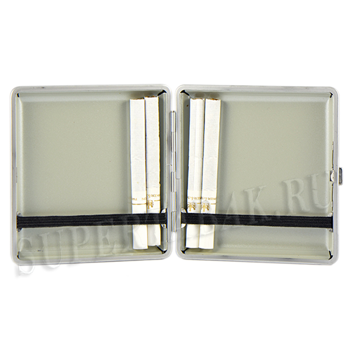 Стандартный портсигар. Прочный, жесткий корпус, накладки не скользят, выронить портсигар из рук маловероятно. Защелка держит прочно.