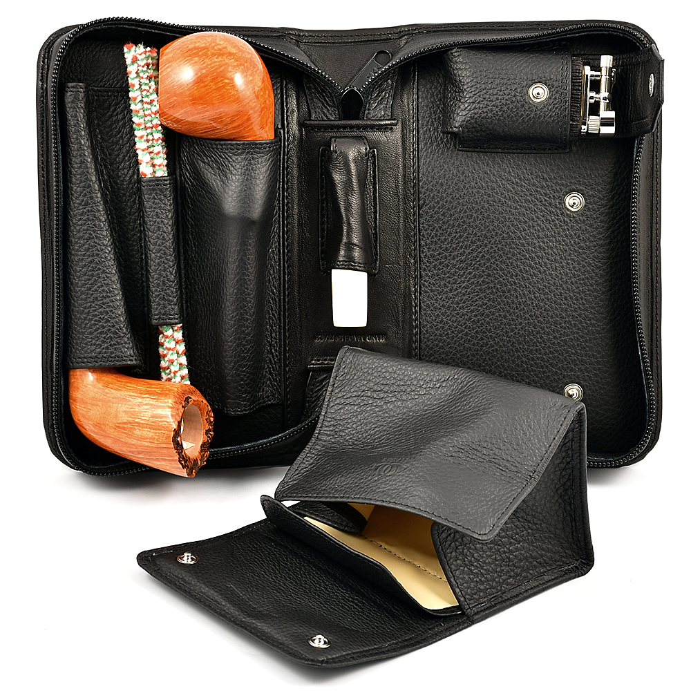 Сумка c кисетом, из высококачественной, мягкой кожи, для трёх трубок.