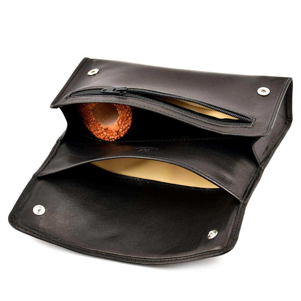 Имеет два кисета для табака и кармашек под курительные аксессуары.