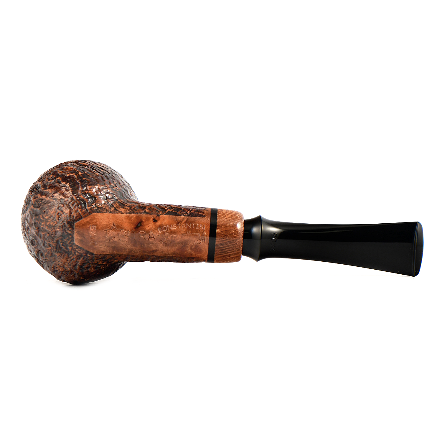 Финишная отделка сделана вручную мастером Константином Береговым. Отборный бриар из Калабрии и немецкий эбонит, декорация на некоторых трубках из дерева падук