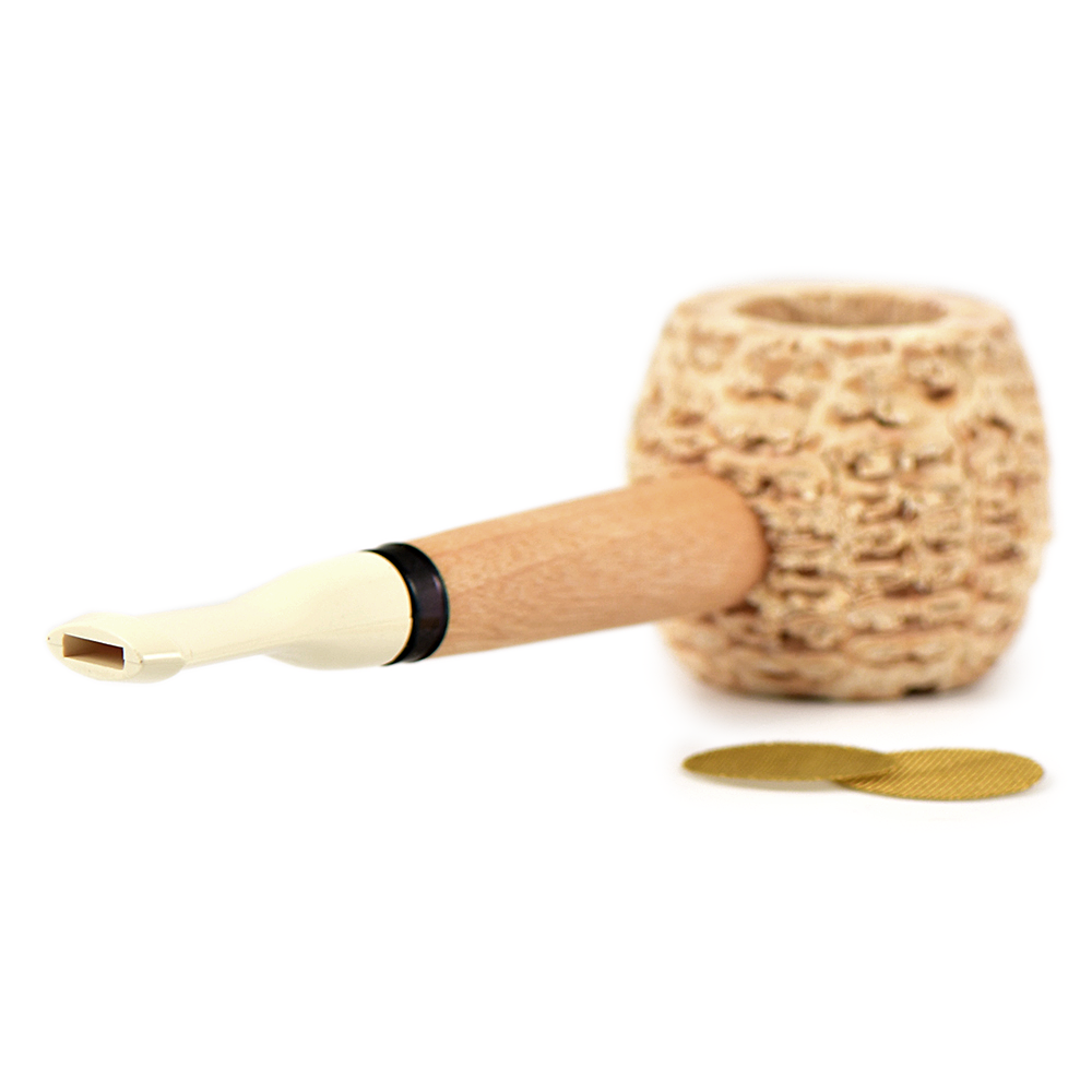Эта натуральная трубка имеет вставку из твердой древесины в нижней части чаши и 2 сеточки на дно в комплекте.