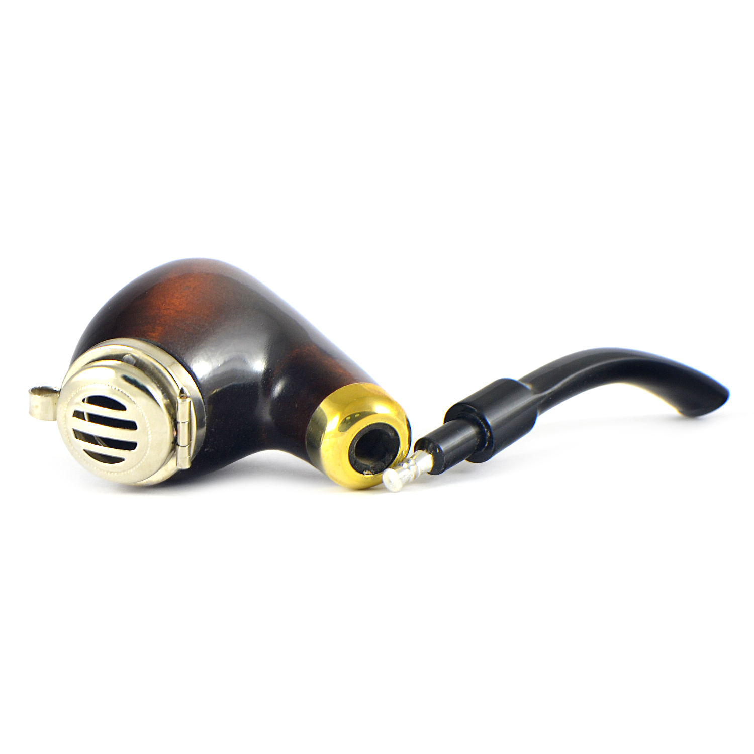 Трубка приобреталась в качестве походно-полевой, с чем отлично справляется благодаря крышке - ей не страшен ветер. Причем крышка довольно крепкая и надежно закрывается на защёлку. Кроме того, трубку можно поставить на любую более-менее горизонтальную поверхность. О минусах - несмотря на внешнюю "пузатость", камера не очень большая - толстые стенки. Впрочем, зато за счет этого она не сильно нагревается. Извлечь охладитель из мундштука не удалось, он сидит очень плотно, а чистить его - большой геморрой. Тем не менее, свои функции трубка выполняет отлично. Обкурил под латакию.