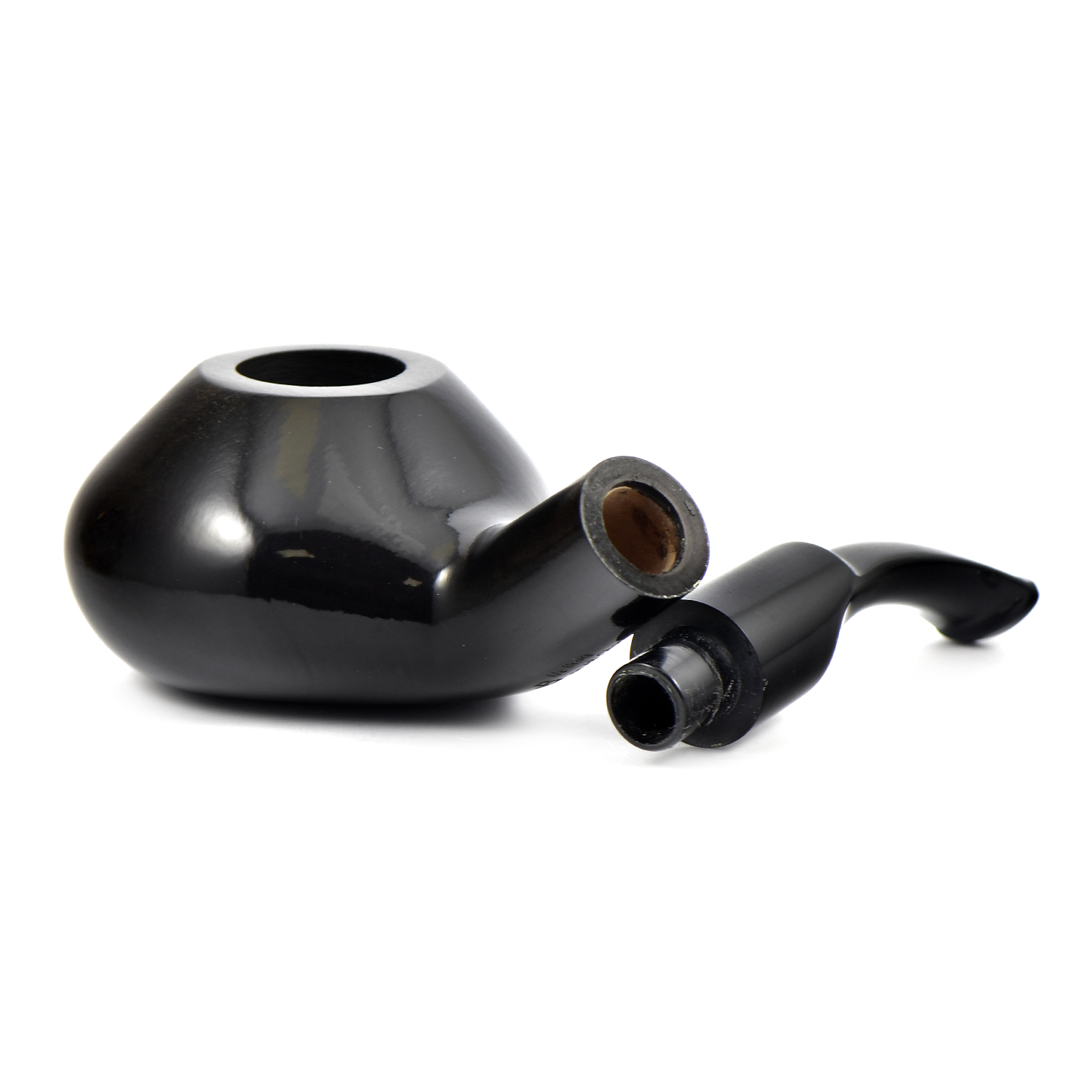 Угольный фильтр болтается, бальсовый застревает при разбухании. Мало места для бальсового фильтра, уходит глубоко в мундштук, потом его проблема извлечь. Трубка быстро намокает и мундштук начинает болтаться. Хватает на 1 раз в день, потом нужно подсушивать. Есть дефекты в строении древесины - сочится смола, видимо, из-за этого и мокнет. На снимке она более яблоком, на самом деле - шайба.
