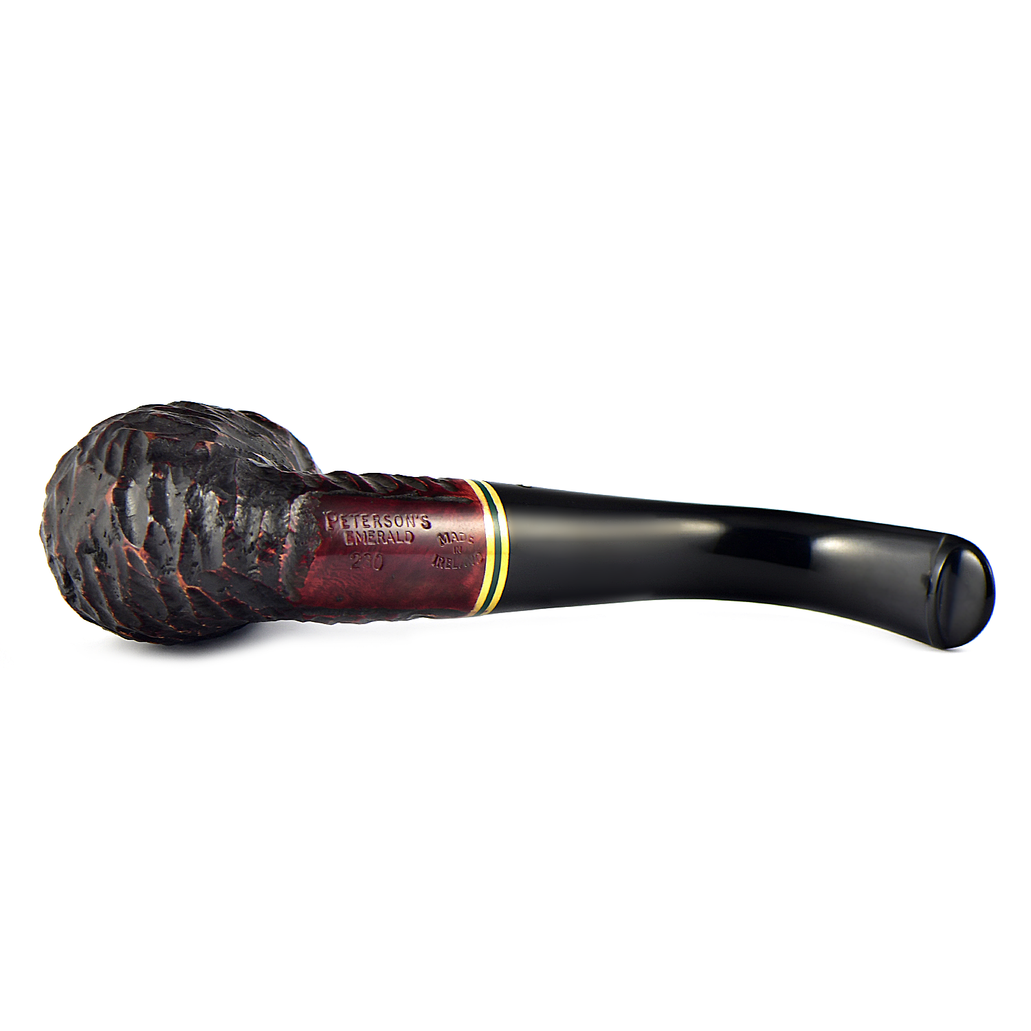 Линия Emerald Rusticated, характеризующаяся глубоким и скалистым рустом с потрясающими акцентами теплой латуни и зеленого акрила, демонстрирует фирменный стиль Peterson с классической презентацией, напоминающей зеленый пейзаж Ирландии. Доступная во множестве самых популярных классических форм, эта линия подчеркивает знаменитую рустированную торговую марку Peterson и традиционные мундштуки P-Lip, запатентованную конструкцию, которая, как доказано, уменьшает прикусывание языка.