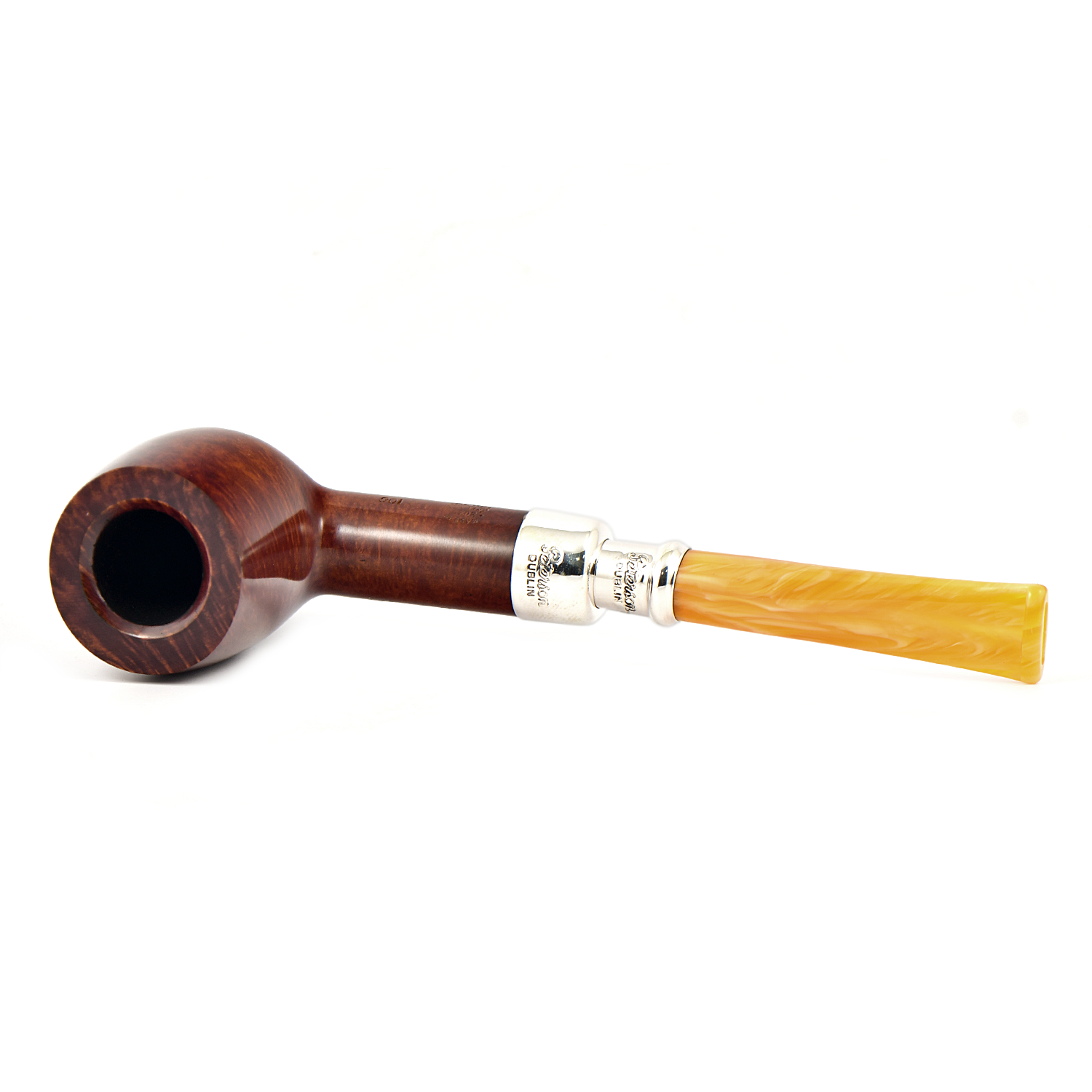 В этом гладком варианте яркое серебро Rosslare Spigot и насыщенный мундштук создают поразительно современный эстетический образ, который выделяется яркостью и напоминает о ранних годах производства трубок, когда для изготовления мундштуков использовался настоящий янтарь.