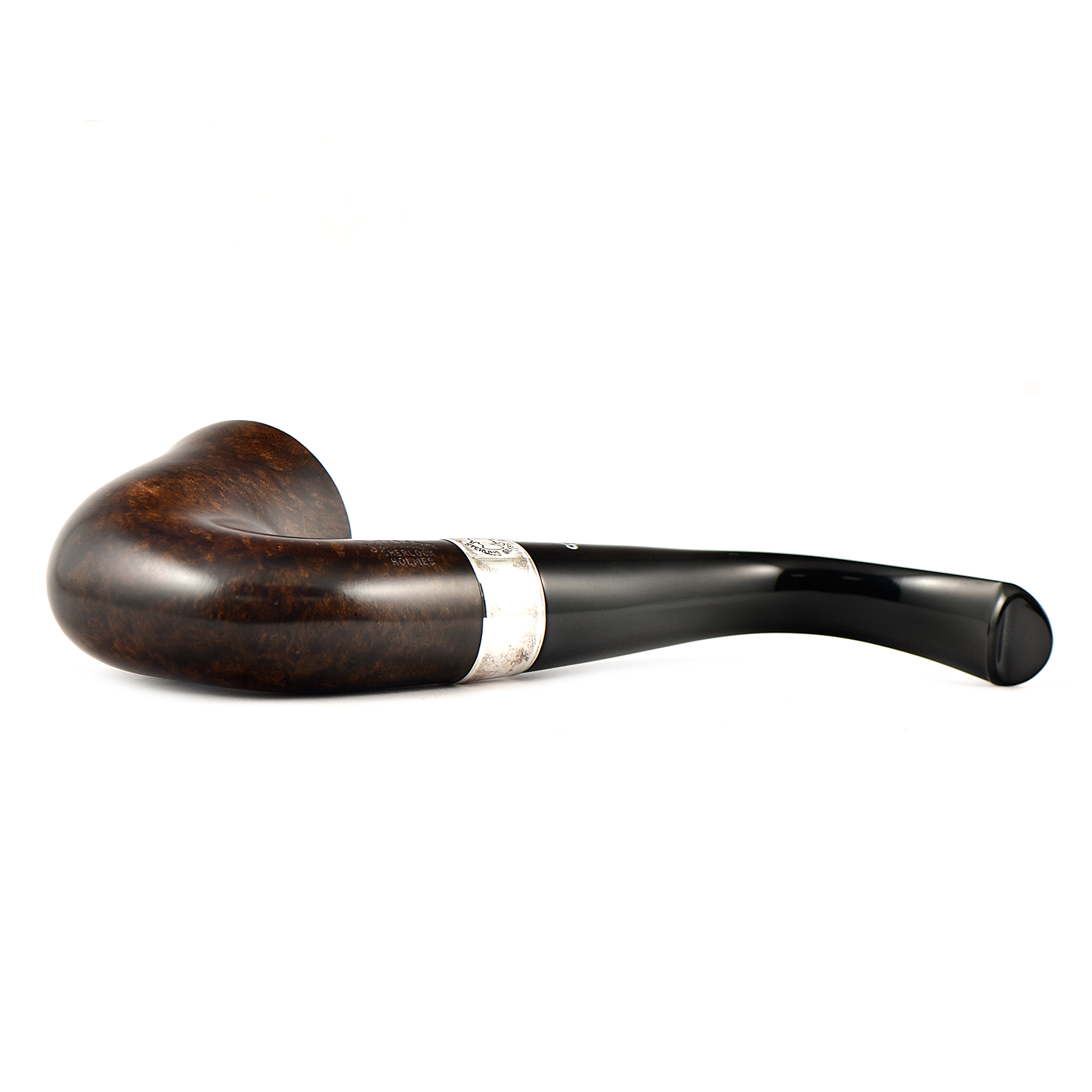Линейка Sherlock Holmes Dark Smooth представляет все легендарные формы, вдохновленные Шерлоком, с насыщенной дымчатой отделкой ореха, подчеркнутой широкими полосами из стерлингового серебра и традиционными угольно-черными мундштуками.