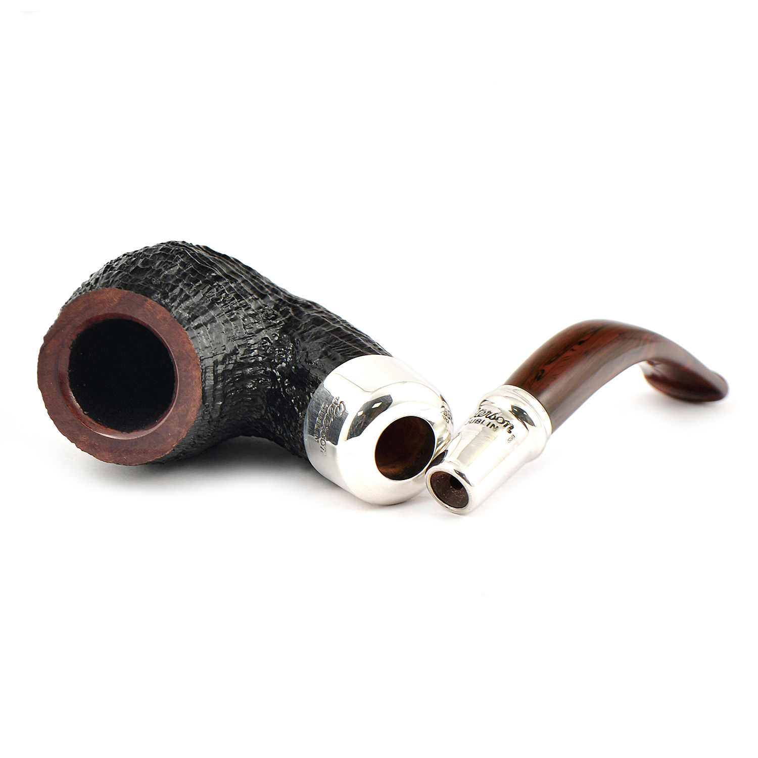 Трубки серии Newgrange Spigot отличаются темным бластовым финишем, контрастирующим с традиционным мундштуком из камберленда, и светлым креплением Spigot из чистого серебра.