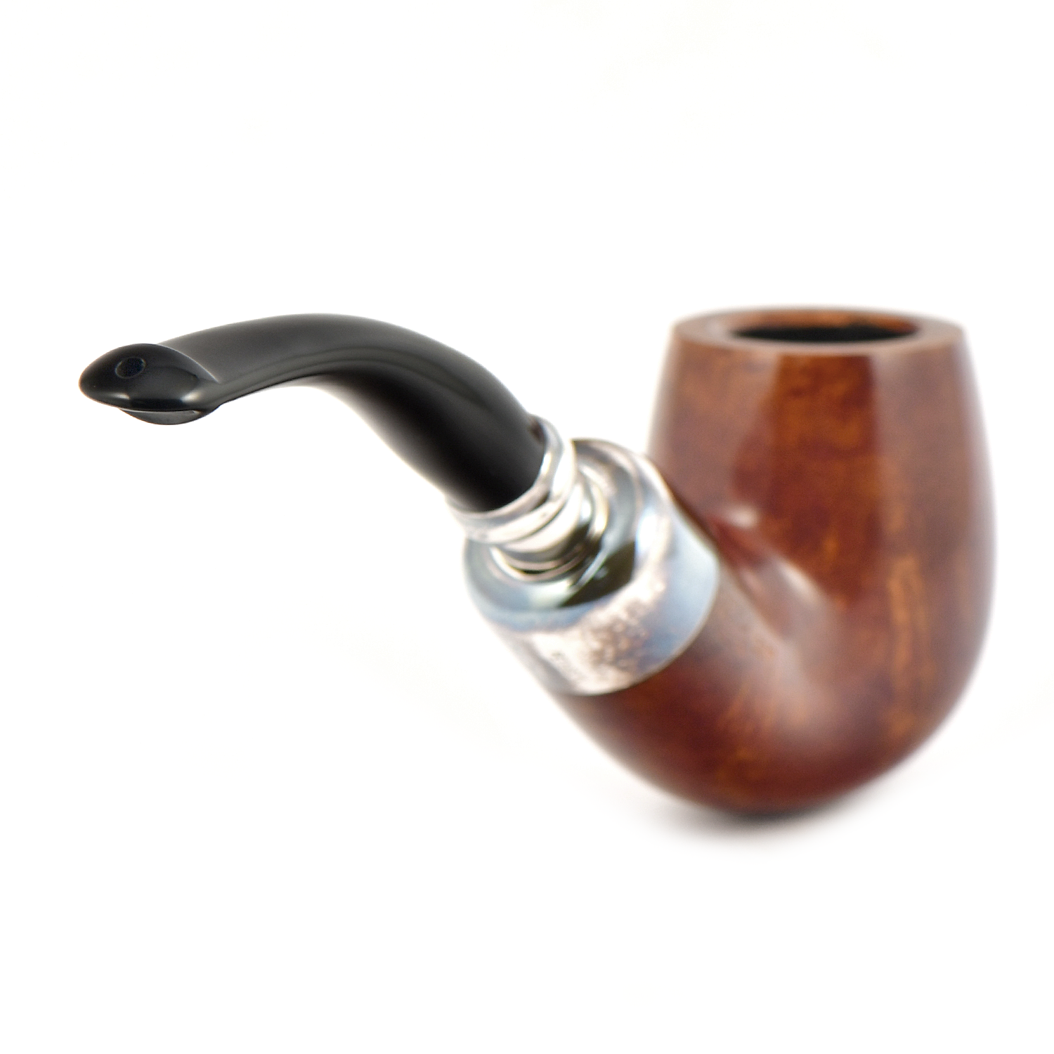 Мундштук с градуированным отверстием, который направляет дым и позволяет влаге собираться внутри резервуара; прочное военное крепление из стерлингового серебра, позволяющее разбирать и чистить трубку без повреждений и деформации;