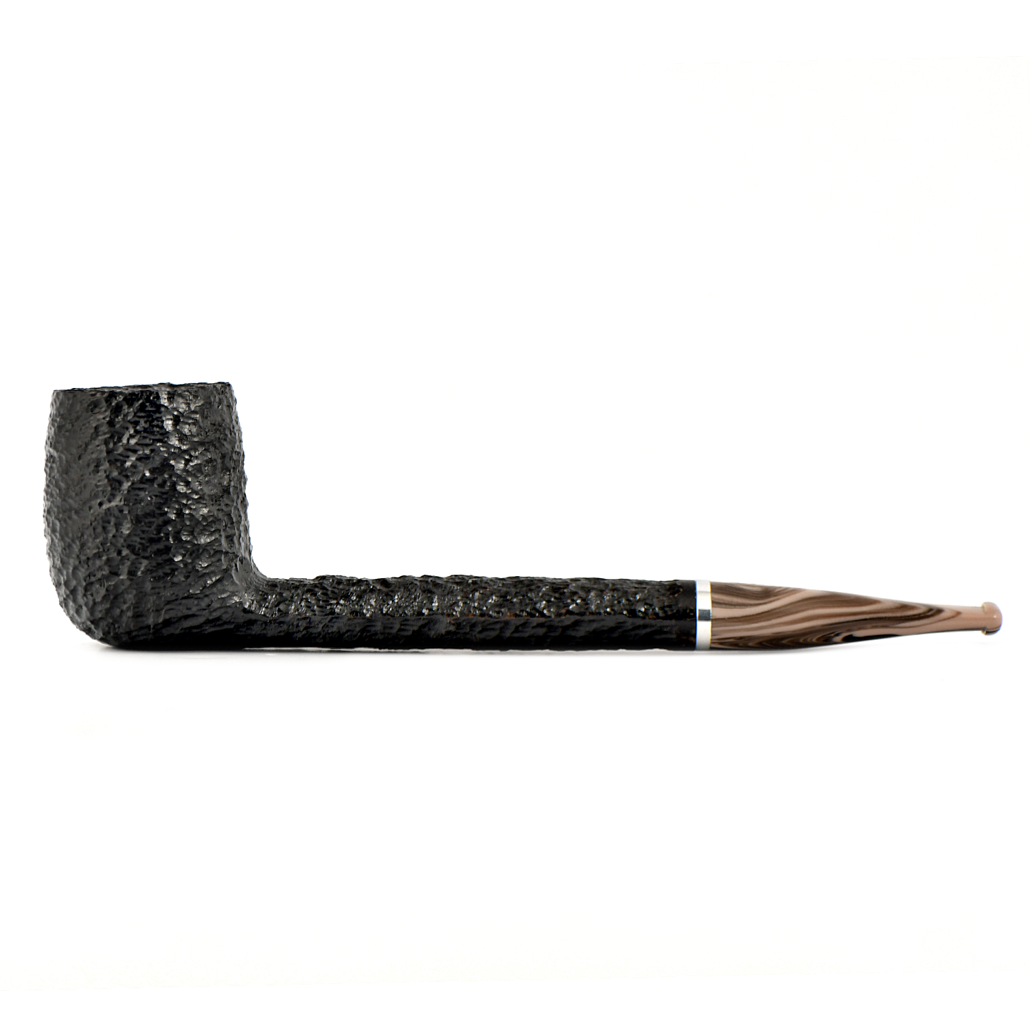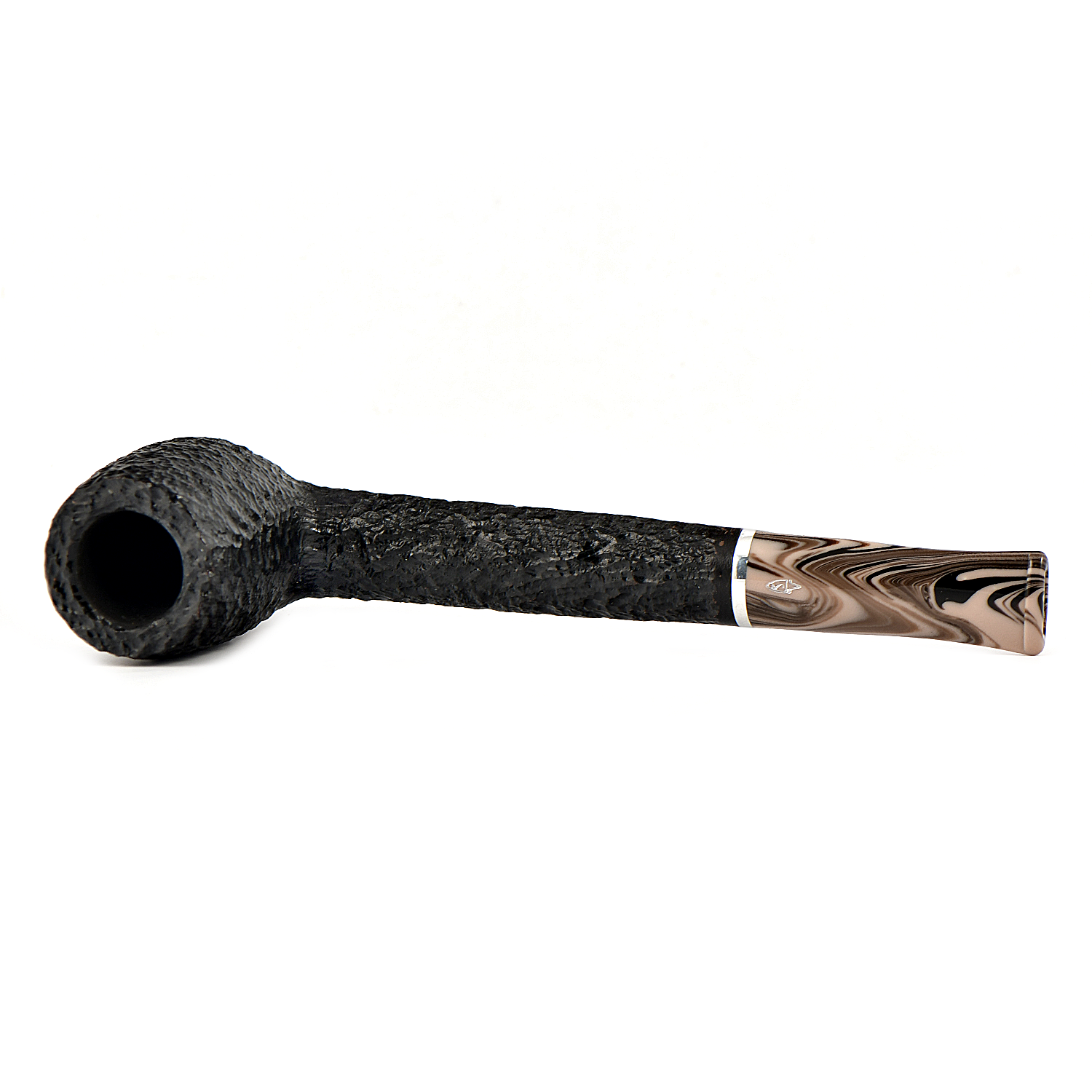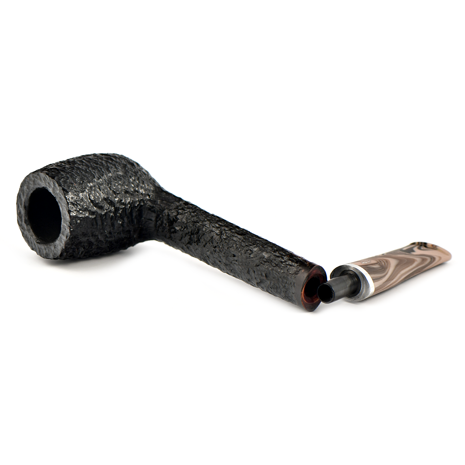 Эта трубка имеет темно-коричневую чашу с гладкой отделкой и черную чашу с рустованной отделкой, а также акриловый мундштук красивого коричневого меланжевого цвета.