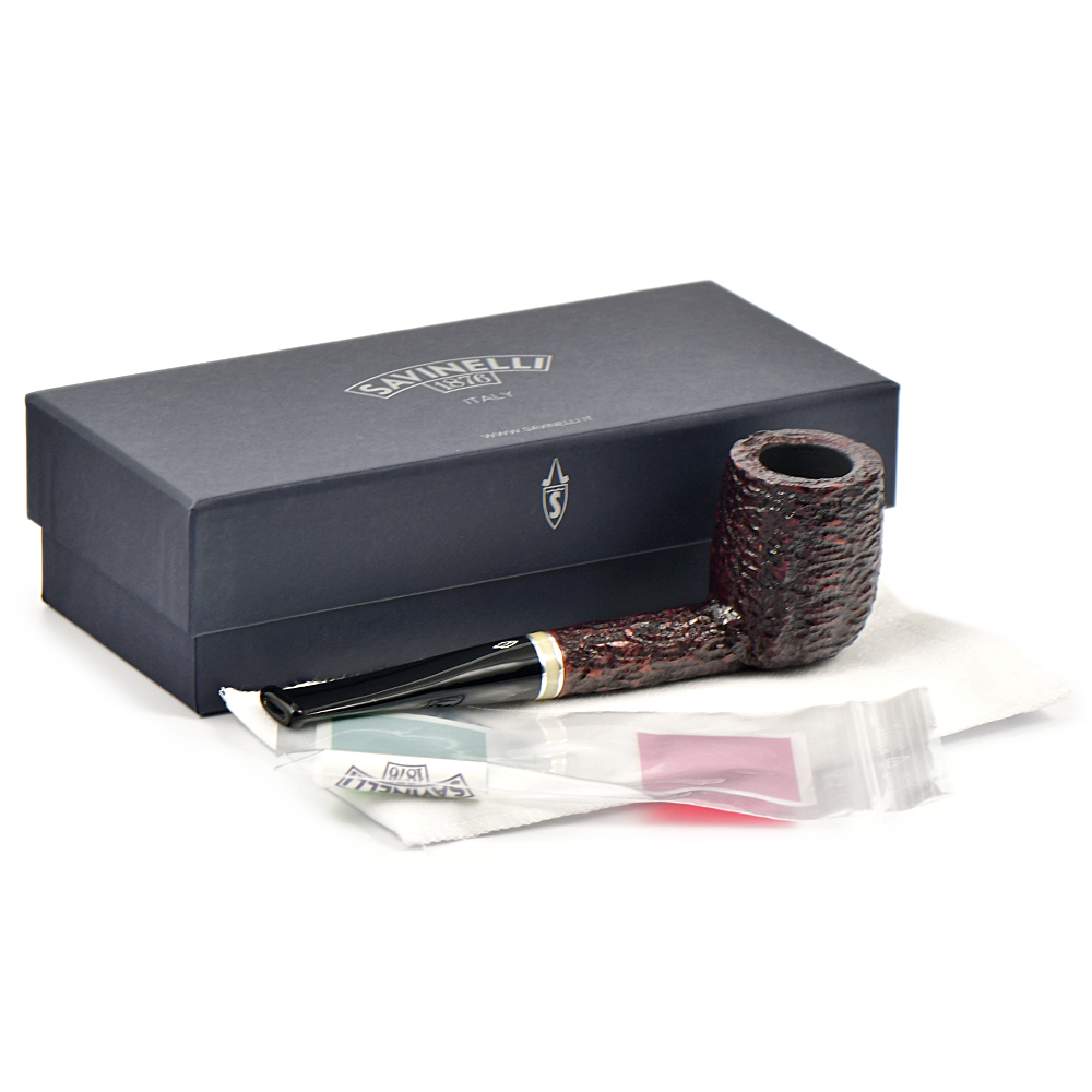 Историческое имя в линейке, Savinelli сделали рустованную и гладкую коричневую отделку с бежевым кольцом и черным акриловым мунштуком.