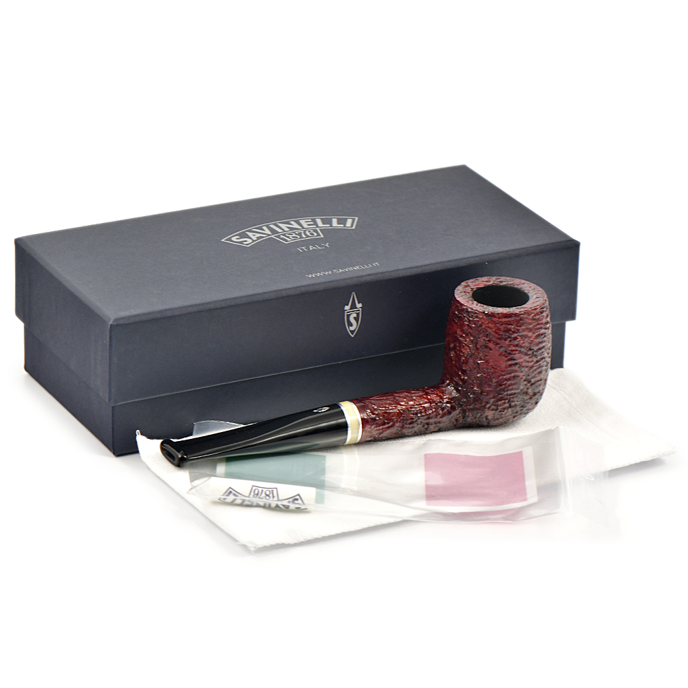 Историческое имя в линейке, Savinelli сделали рустованную и гладкую коричневую отделку с бежевым кольцом и черным акриловым мунштуком.