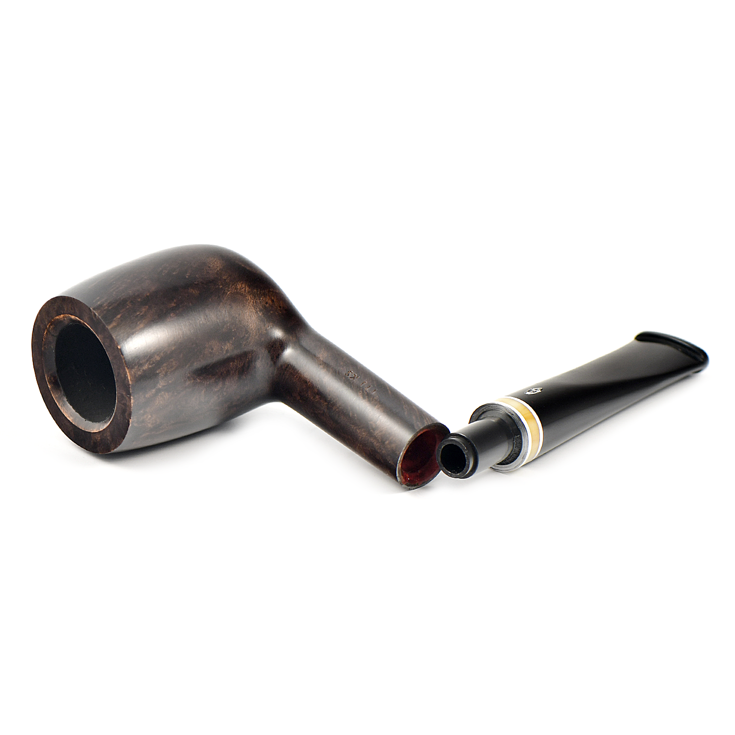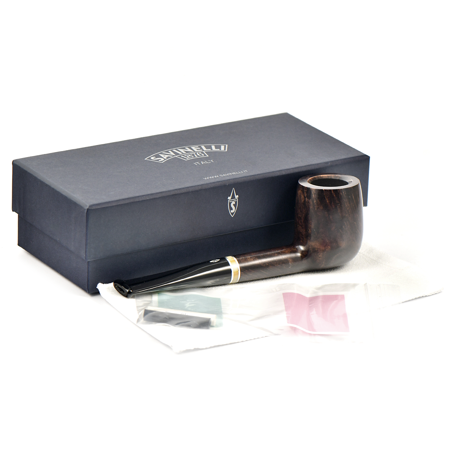 Историческое имя в линейке, Savinelli сделали рустованную и гладкую коричневую отделку с бежевым кольцом и черным акриловым мунштуком.