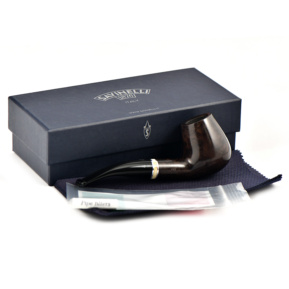 Историческое имя в линейке, Savinelli сделали рустованную и гладкую коричневую отделку с бежевым кольцом и черным акриловым мунштуком.