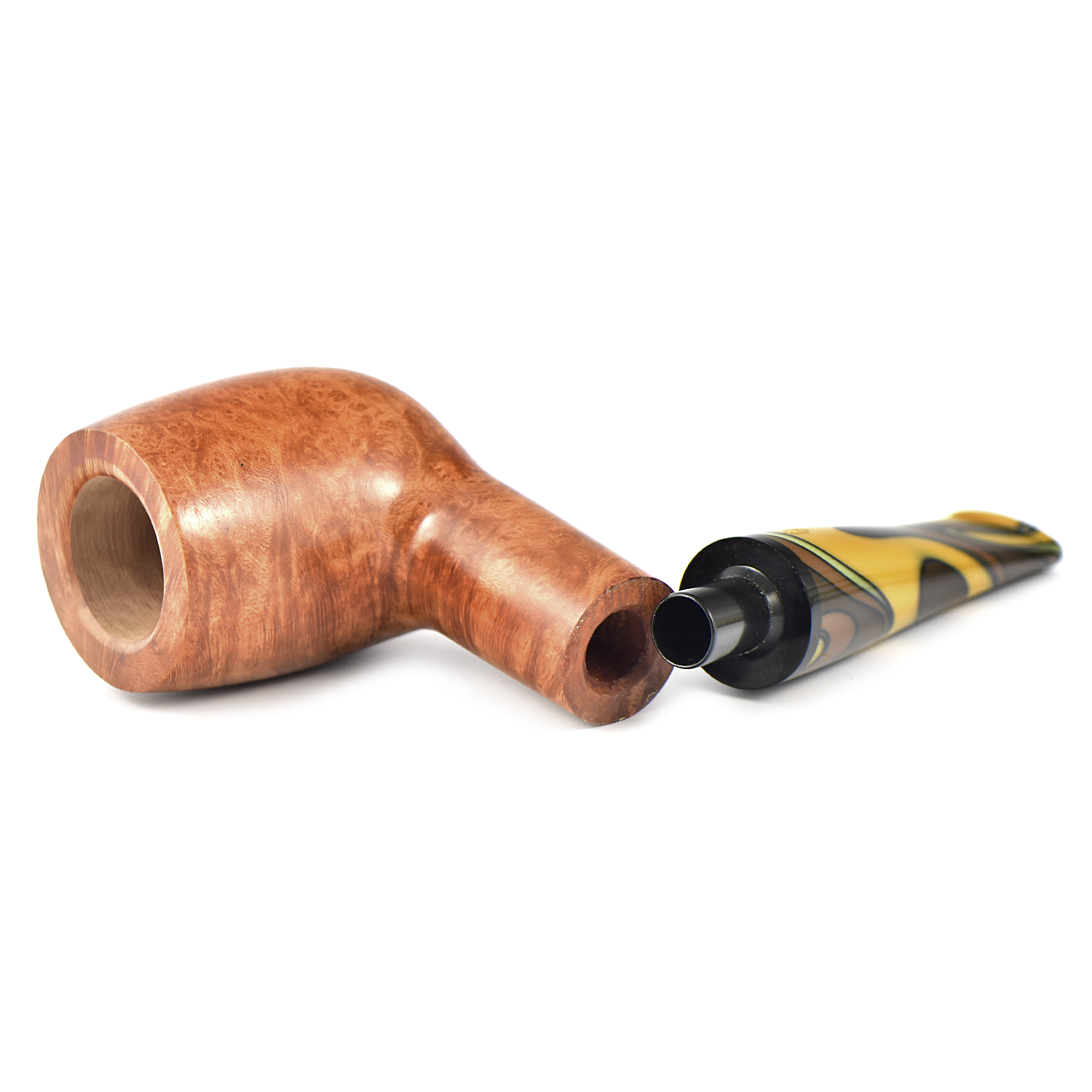 Акриловый мундштук с «волнистыми» землистыми цветами делает эту трубку естественного светлого цвета в гладкой отделке очень теплой и интересной вещью.