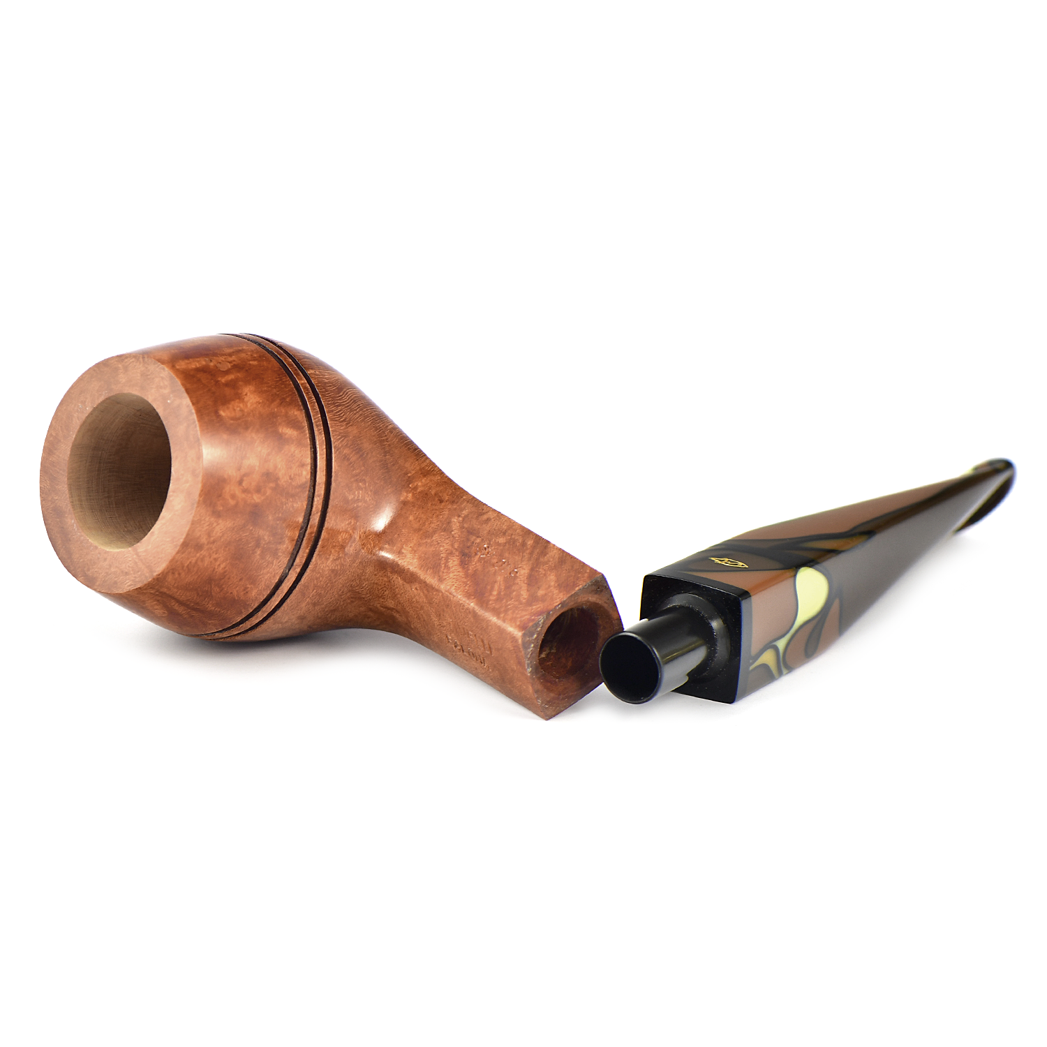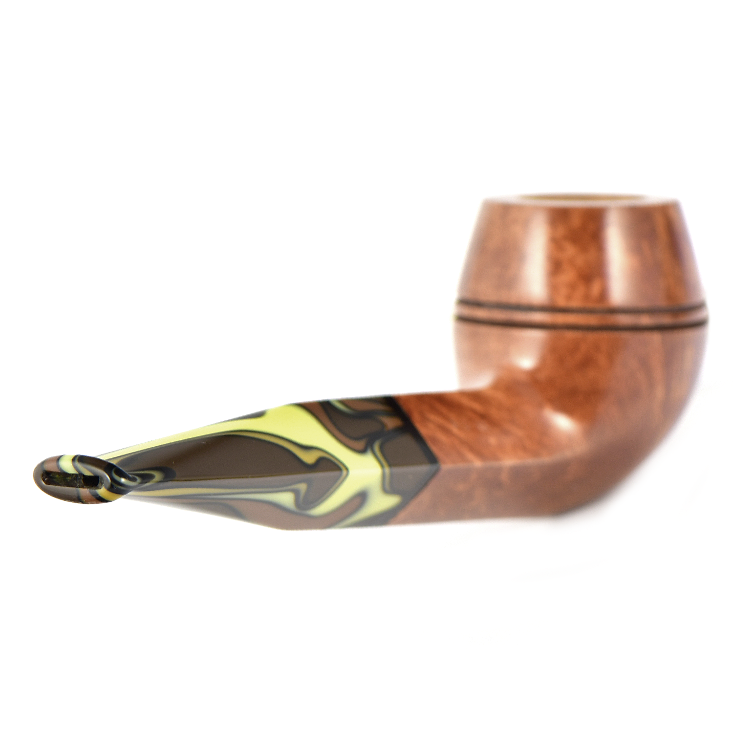 Акриловый мундштук с «волнистыми» землистыми цветами делает эту трубку естественного светлого цвета в гладкой отделке очень теплой и интересной вещью.
