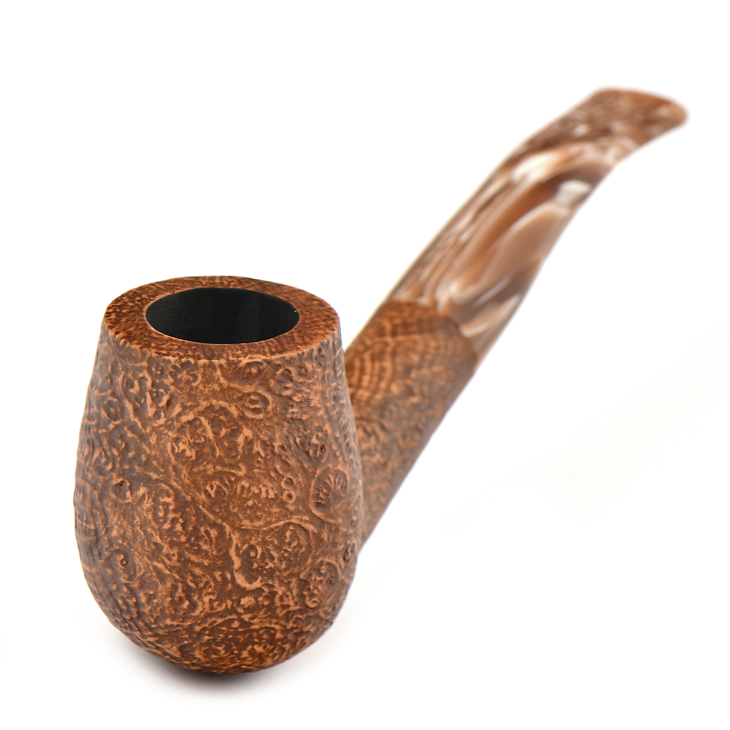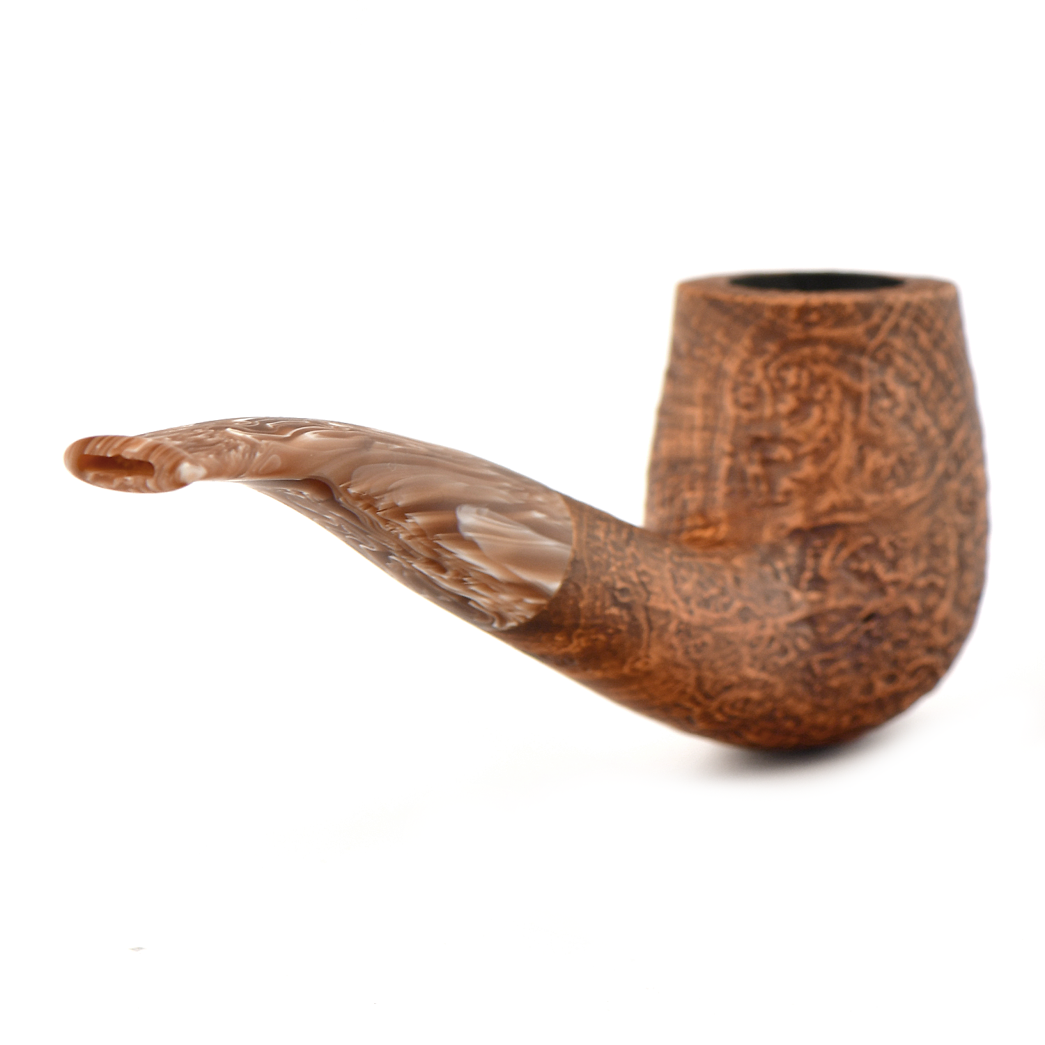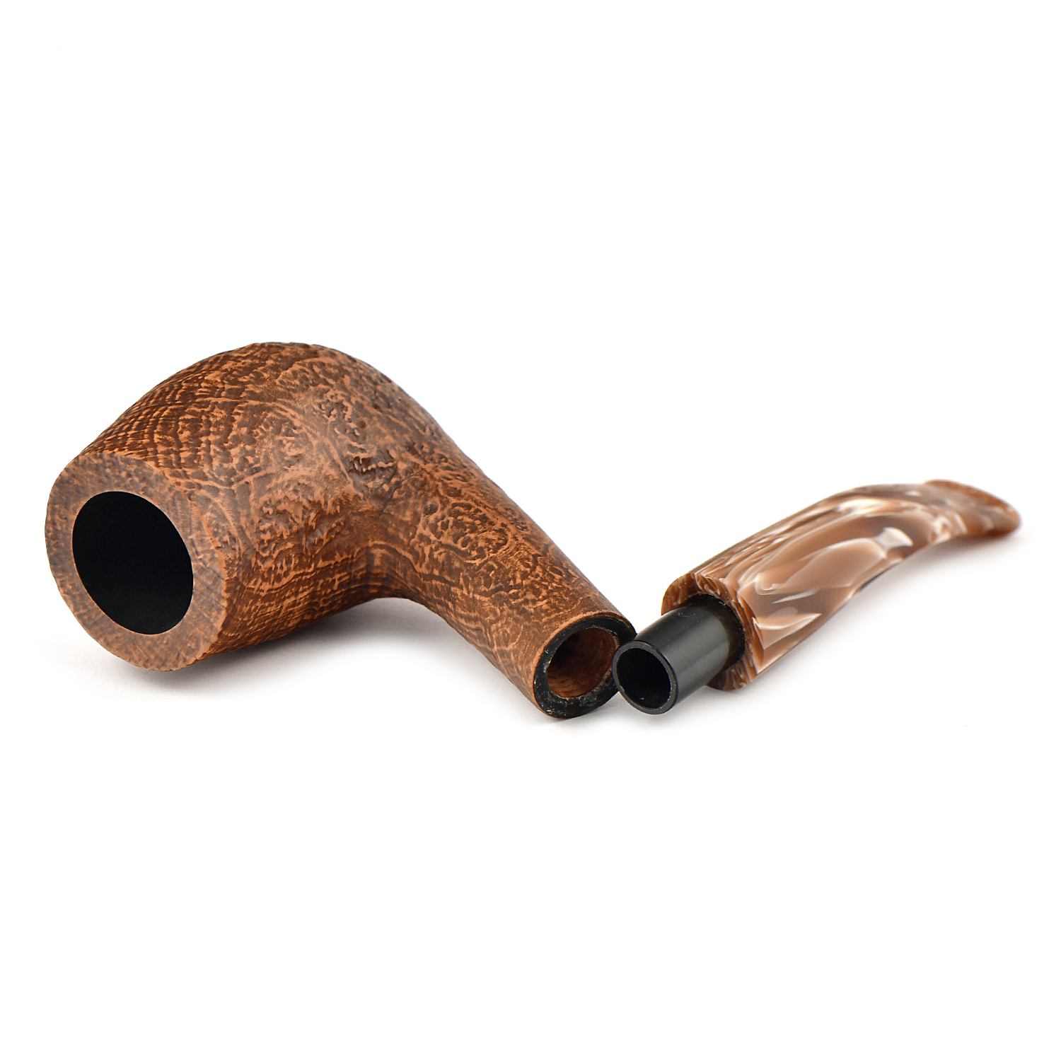 Матовый мундштук с двухцветным дизайном искусно гармонирует с пескоструйной обработкой поверхности, что также придает трубке приятные тактильные ощущения.