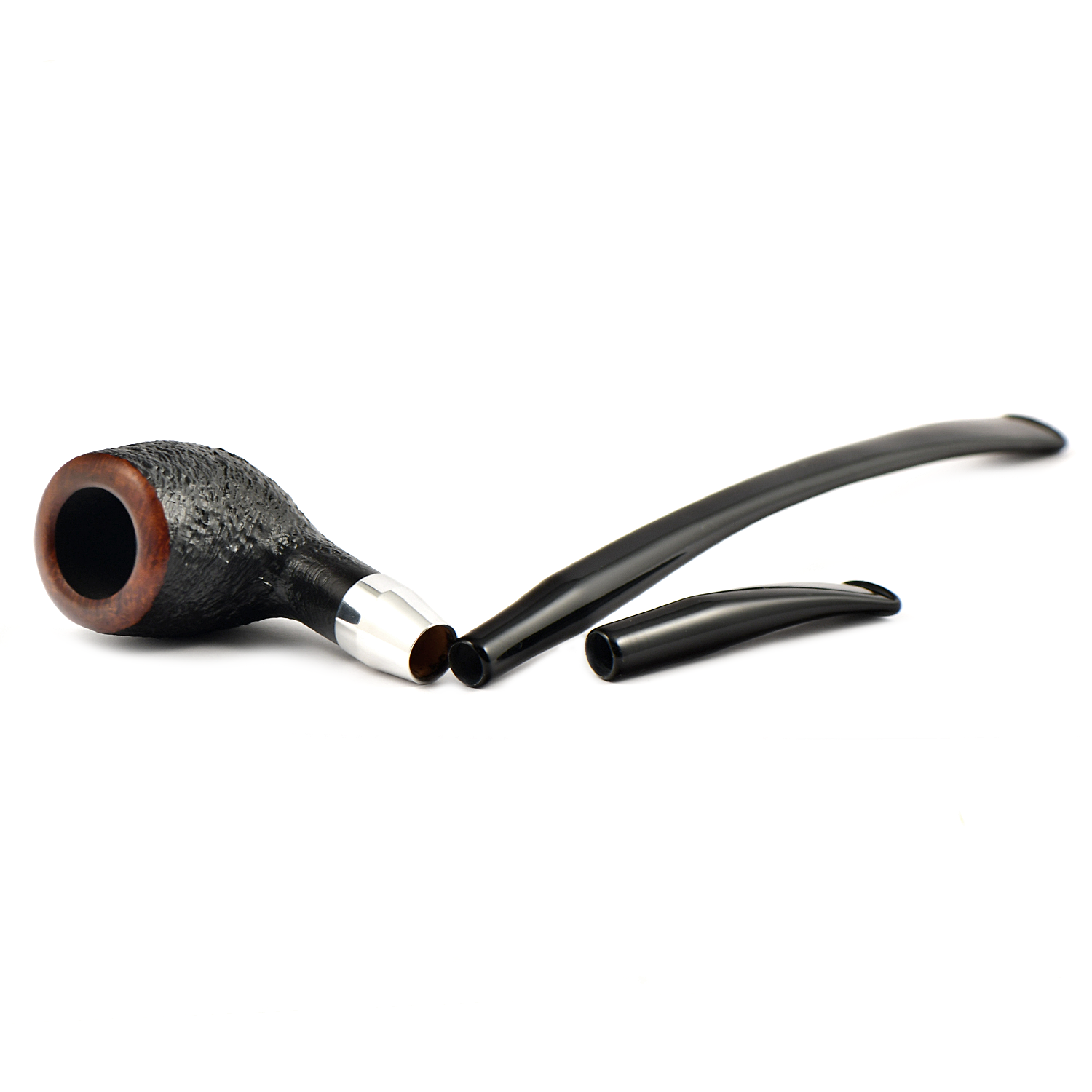 Элегантная трубка типа Churchwarden с серебристым кольцом, в комплекте с длинным и коротким акриловым мундштуком Armi.