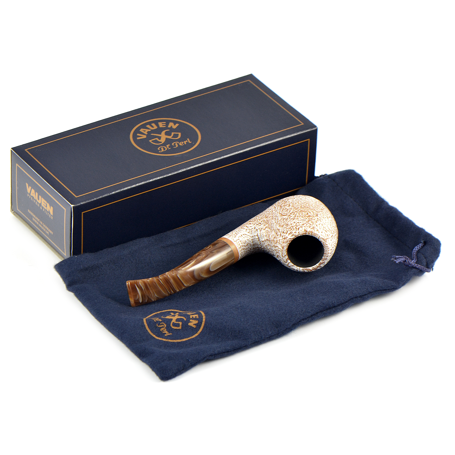Курительная трубка Vauen Fuji - Удивительное сочетание чаши обработанной пескоструйной обработкой и окрашенной в белый цвет, с матовой отделкой мундштука с коричневыми разводами соответствующего цвета.