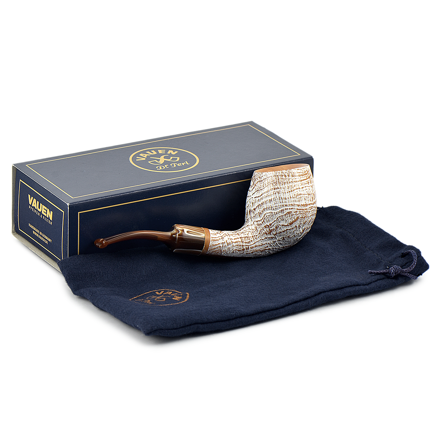 Курительная трубка Vauen Fuji - Удивительное сочетание чаши обработанной пескоструйной обработкой и окрашенной в белый цвет, с матовой отделкой мундштука с коричневыми разводами соответствующего цвета.