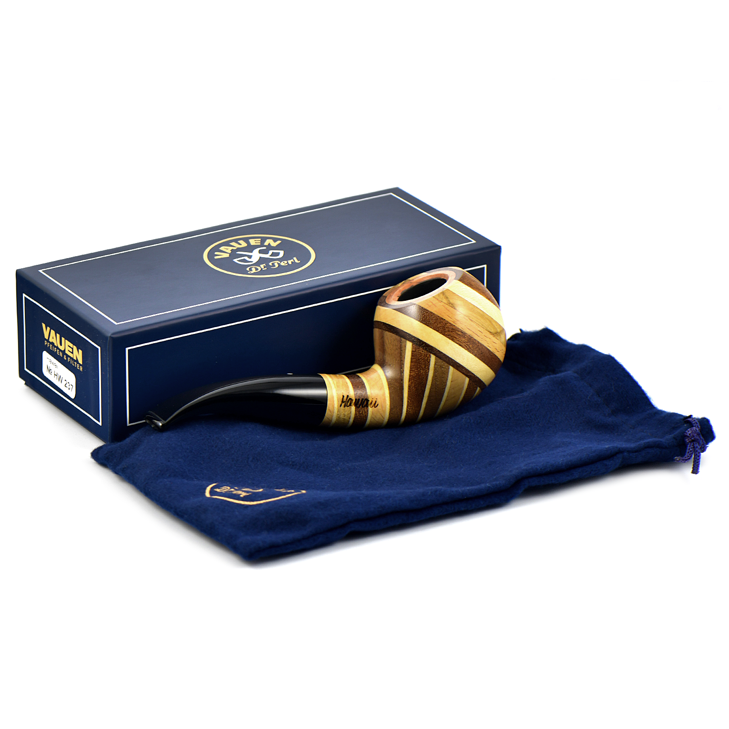 Инновационная серия трубок «Гавайи» подражает гавайским деревянным доскам для серфинга ручной работы. Различные слои благородной древесины с внутренней инкрустацией из бриара в чаше и чубуке - для сохранения подлинного вкуса табака. Поверхность покрывается воском и маслом.