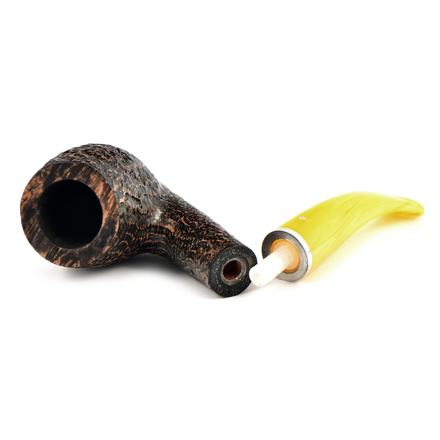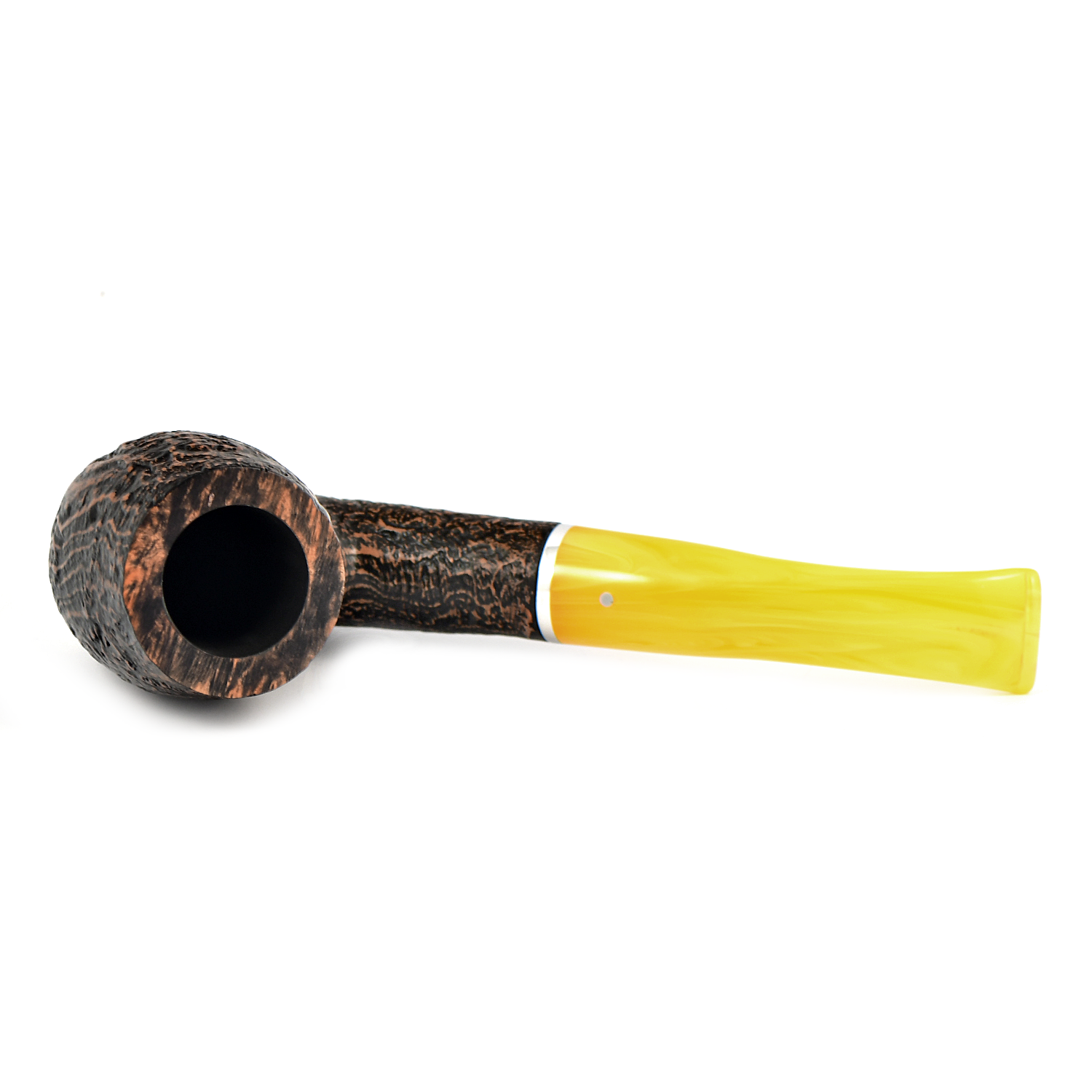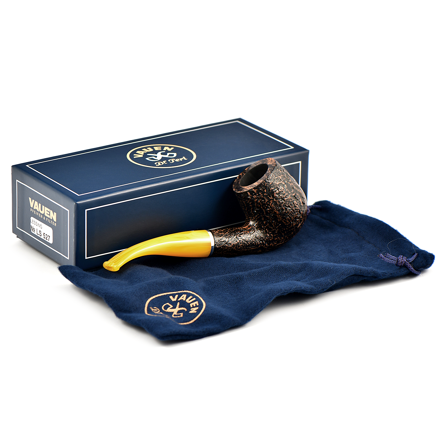 Курительная трубка Vauen Lessing с пескоструйной обработкой и белой точкой, желтый мундштук которой подчеркивает отличительный характер серии.