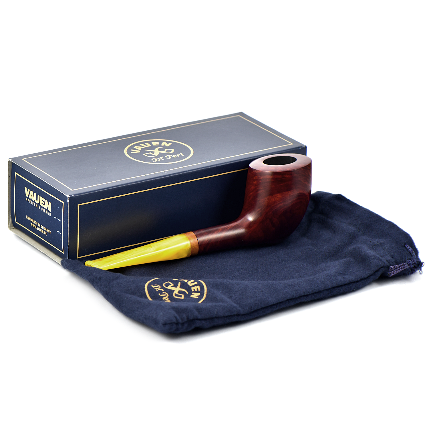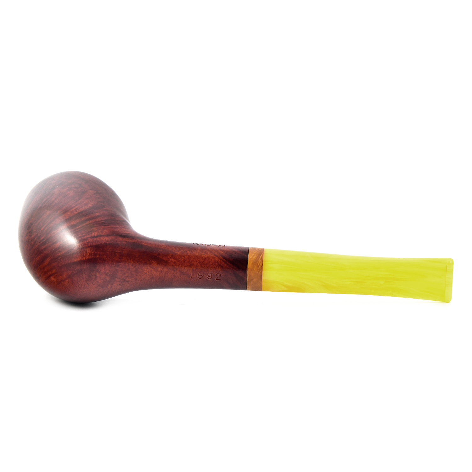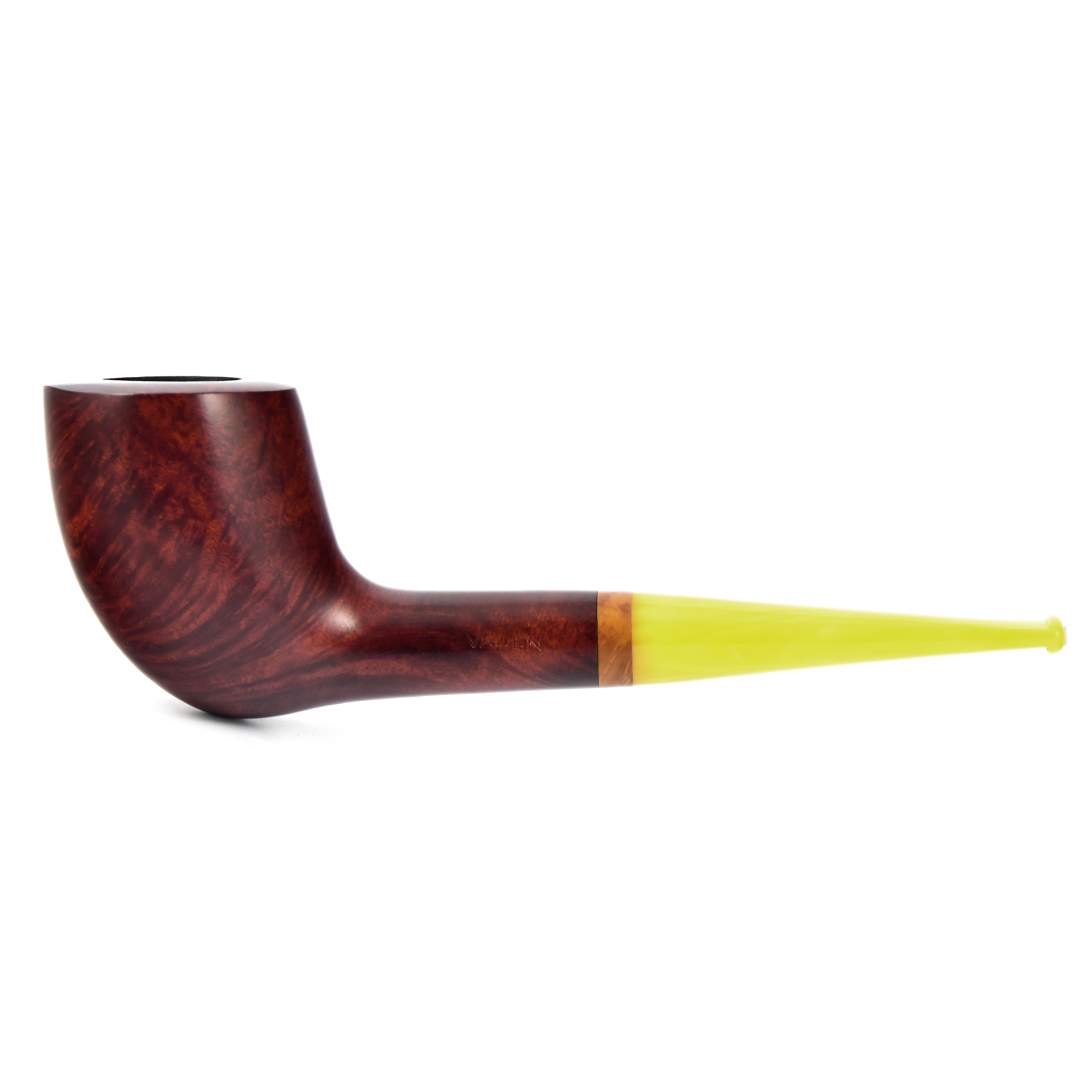 Курительная трубка Vauen Sola - Sola означает «солнечный». Сияющее сочетание теплого коричневого оттенка и желтого мундштука. Кольцо из бриара, выточенное вручную, завершает украшение.
