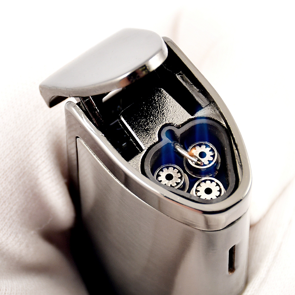 Газовая турбо-зажигалка с тройным факелом и пробойником для сигар.