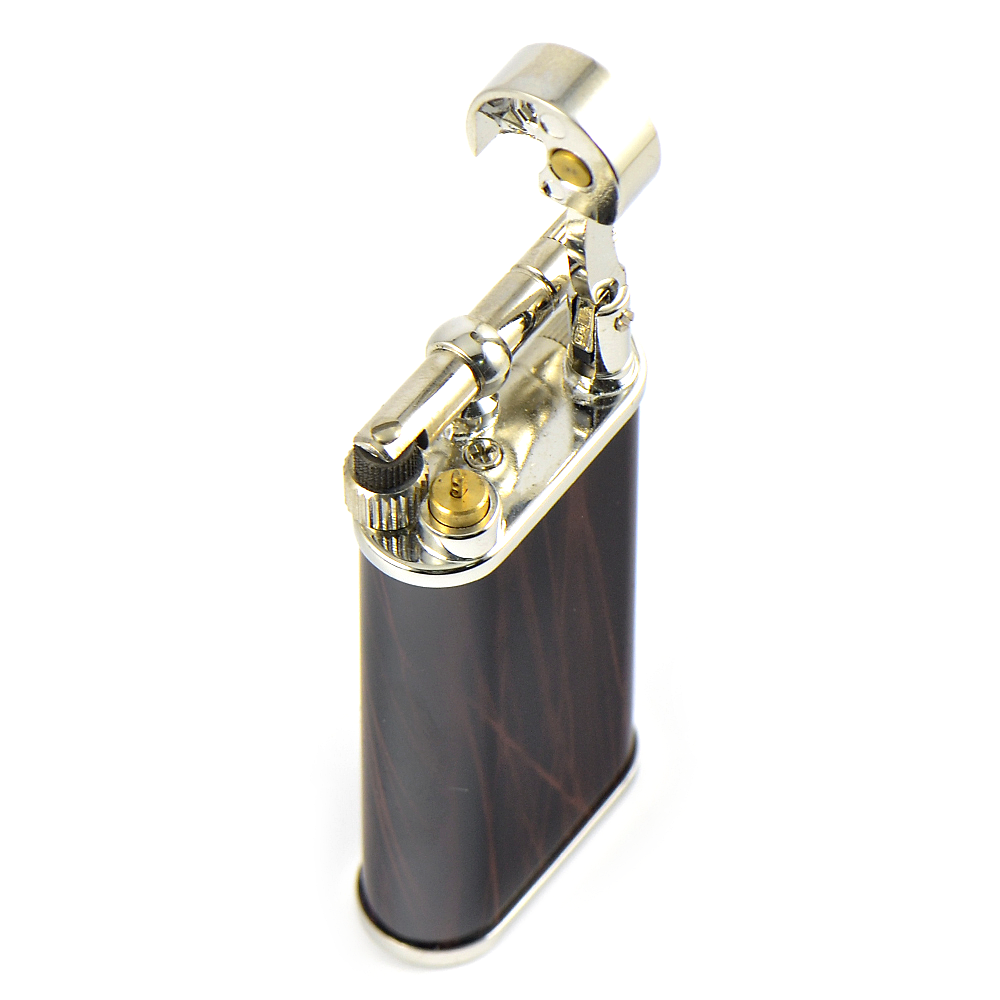 Зажигалка очень хорошая, сделана полностью из металла. Небольшая, но очень емкая. Пластмассовые детали не обнаружил. Корпус металлический, эмалированный. Пламя широкое, не сконцентрированное, очень "деликатное", вкус табака не портит, трубка раскуривается идеально. Размер пламени регулируется в очень широком диапазоне. Конструкция чрезвычайно простая, зажигалка тяжелая, чрезвычайно прочная, железная, в прямом и переносном смысле, неубиваемая (если не бракованная, то ломаться в ней нечему). Такой зажигалки хватит на долгие годы. Заправка: Для заправки необходимо вывернуть отверткой или трубочным скребком втулку со шлицем, которая находится вокруг заправочного клапана, снять нижнюю крышку. Произвести заправку с использованием переходника. Поставить на место крышку, закрутить втулку. В полость под крышкой можно натолкать ваты и положить туда запасной кремень. Первое использование: Соблюдайте осторожность, не направляйте на себя!!! В моем случае зажигалка выплюнула сноп пламени сантиметров 10 в длину. Отрегулировал пламя регулировочным винтом (находится рядом с заправочным клапаном). Чистку зажигалки нужно производить в заправленном состоянии, во избежание засорения форсунки частицами грязи. Зажигалкой доволен чрезвычайно, своих денег она стоит однозначно.