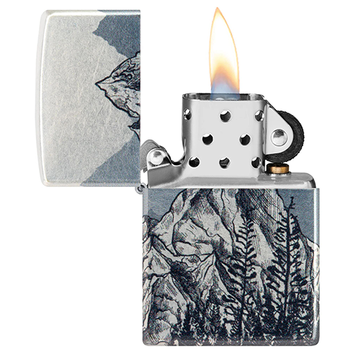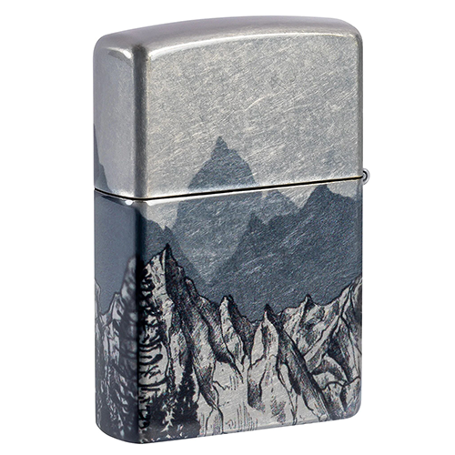 Вдохновленная абстрактными линейными рисунками, монохромная горная местность покрывает все стороны этой классической зажигалки Tumbled Chrome в дизайне 540 Fusion, в котором металлические тона и текстура корпуса зажигалки интегрированы в рисунок для придания ему дополнительной глубины.