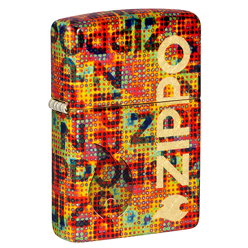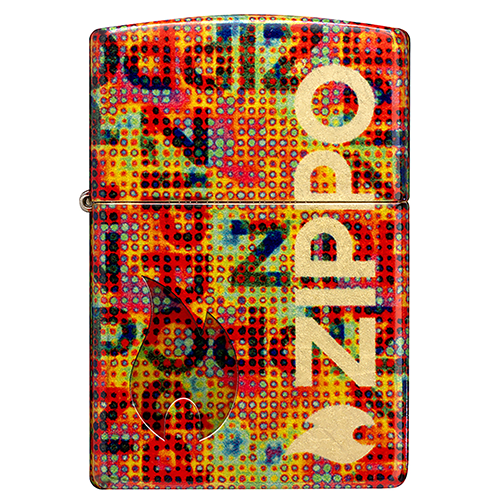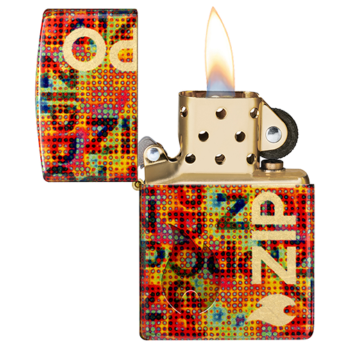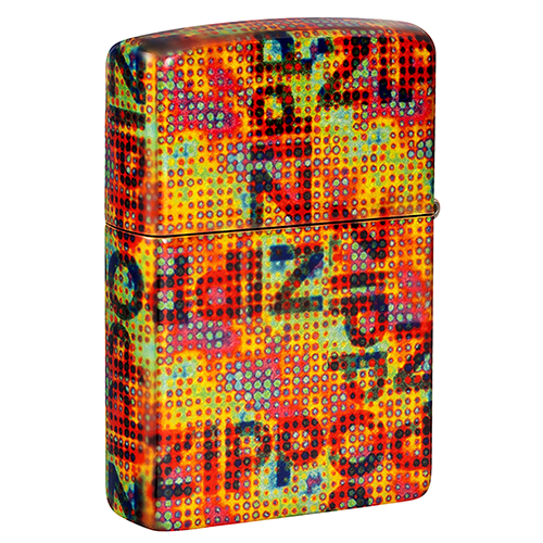 Основа из искусственно состаренной латуни проглядывает сквозь завораживающий узор из пикселизированных логотипов Zippo, а в левом нижнем углу изящно выгравирован значок пламени Zippo..
