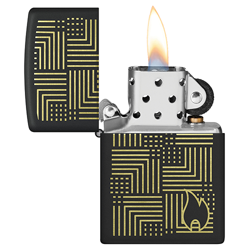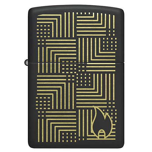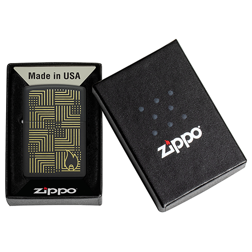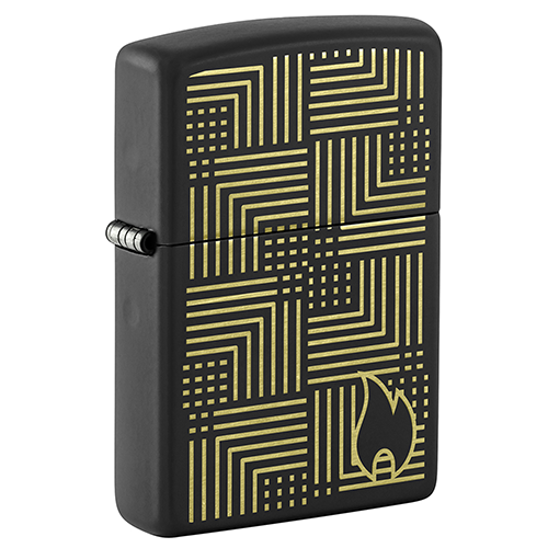 Мотив в стиле арт-деко, выполненный в роскошных латунных тонах методом лазерной гравировки, идеально симметрично смотрится на этой классической зажигалке Zippo черного матового цвета..